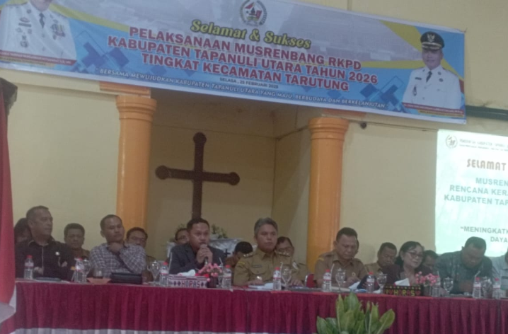 Musrenbang RKPD 2026 di Kecamatan Tarutung dihadiri Wakil Bupati Tapanuli Utara yang sekaligus sebagai Pimpinan Sidang pada Musrenbang dimaksud. Pada sambutannya beliau menyampaikan pesan Bapak Bupati Tapanuli Utara untuk melakukan perubahan ke arah yang lebih baik dengan menerapkan Tagline MarTuhan, MarRoha, dan MarBisuk. MarTuhan, mengandalkan Tuhan dalam menjalani pekerjaan; MarRoha, memberikan hati dalam menjalani setiap pekerjaan; dan MarBisuk, dalam bekerja kita harus tanggap situasi. Beliau juga mengajak untuk melakukan perubahan yang bisa ditunjukkan dengan melakukan perubahan cara bekerja dan perubahan cara pelayanan. Beliau menghimbau agar kita merawat dan menjaga pembangunan yang ada di Kabupaten Tapanuli Utara. Pada kesempatan yang sama, beliau juga mengajak untuk mendukung Program Pemerintah selaras dengan Asta Cita dan Visi Misi Bupati Tapanuli Utara. Beliau berpesan kepada seluruh Kepala Desa se-Kecamatan Tarutung agar mengusulkan Program/Kegiatan yang sangat-sangat prioritas, mengingat kemampuan keuangan yang sangat terbatas dan menggunakan dana desa sesuai dengan kebutuhan yang dibutuhkan oleh masyarakat.